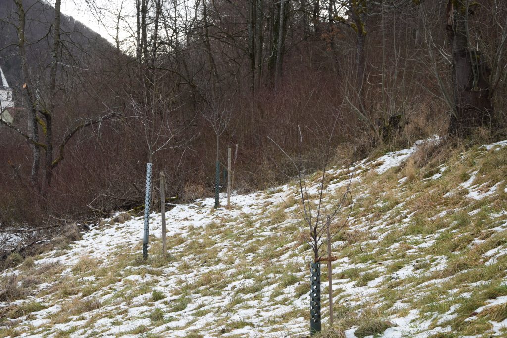 Seit 2016 hat RANA drei kleine Streuobstwiesen an einem steilen Osthang in Unterhausen erworben.