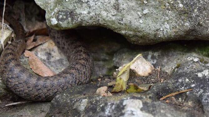 Gertenschlank ist Olga, das kleine Schwangerschaftsbäuchlein fällt kaum auf, wenn sie sich im Honauer Freibad in der Sonne räkelt. Und das tut sie zur Freude vieler Freibadgäste ganz ungeniert. Allerdings sind nicht alle begeistert, wenn sich die Dame so offen zur Schau stellt. Denn Olga ist eine rund 50 Zentimeter lange Schlingnatter, die in der Natursteinmauer im Freibad Wärme tankt. „Manche kommen seither nicht mehr ins Bad”, sagt Bademeisterin Bärbel Braconnier.