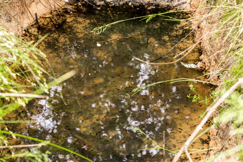 In diesem Gebiet wurden zahlreiche neue Kleingewässer für die Gelbbauchunke und andere Arten angelegt.