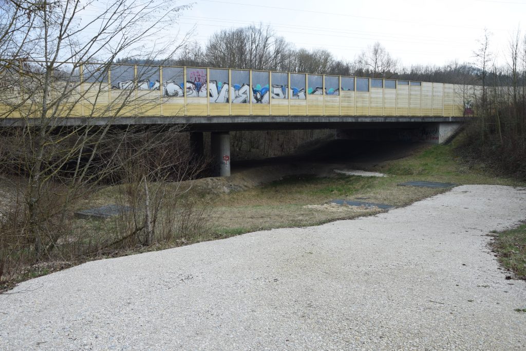 Eine Querung der Straße wäre unter einer bestehenden Brücke möglich. Um möglichst viele Wanderer auf den richtigen Weg unter der Straße zu führen, sollten entlang der Hauptstraße Leiteinrichtungen installiert werden.